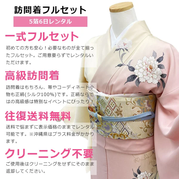 (PR)京都きもの友禅 サイトを見に行く オススメ商品 【新品レンタル】(5泊6日) 七五三 女の子 3歳 被布セット ウロコにボタン 赤 着物【t2231101】通常価格:19,800円(税込)可愛いだけじゃない!使用済みのペットボトルから作られた、再生ポリエステル生地を染色し縫製されたサスティナブルな着物です。ちりめんのような風合いと、シルクに似た肌触りと光沢が特徴。モダンでおしゃれなデザインも目を引きます。発表会、演奏会、初詣、卒園式、初稽古、初釜、初節句など、七五三以外のシーンでもぜひご利用ください。★往復送料無料★クリーニング不要 【新品レンタル】(5泊6日) 七五三 男の子 3歳 フルセット 被布セット モダン 紺/青千鳥格子 着物 ネイビー ブルー【t2232201】通常価格:14,900円(税込)和洋折衷でひと味違う、モダンな雰囲気でお祝いを。チェックやボーダー等のテキスタイルを使用した、おしゃれ度の高い被布セットです。生命力が強く蔦を伸ばすことから、吉祥文様として多く使われてきた唐草の地紋が着物または被布に用いられています。さりげなく古典を取り入れながら、大正ロマンを思わすレトロさと、縛られない自由な雰囲気が魅力です。和装洋装、どんな場面でも馴染みやすいデザインは有能な一枚。発表会、演奏会、初詣、卒園式、初稽古、初釜、初節句など、七五三以外のシーンでもぜひご利用ください。 【新品レンタル】(5泊6日) 七五三 女の子 7歳 着物セット ダイヤに紙風船/青 着物【t2271202】通常価格:29,800円(税込)使用済みのペットボトルから作られた、再生ポリエステル生地を染色し縫製されたサスティナブルな着物です。生地や柄にこだわった一味違うデザインはお祝い着をこだわりたい方にぴったり。ちりめんのような風合いと、シルクに似た肌触りと光沢が特徴。モダンでおしゃれなデザインも目を引きます。発表会、演奏会、初詣、卒園式、初稽古、初釜、初節句など、七五三以外のシーンでもぜひご利用ください。 【新品レンタル】(5泊6日) 七五三 男の子 5歳 羽織袴セット モダン 紺 ベージュ×紺 青 千鳥格子 着物【t2252204】通常価格:25,900円(税込)和洋折衷でひと味違う、モダンな雰囲気でお祝いを。チェックやボーダー等のテキスタイルを使用した、おしゃれ度の高い袴セットです。生命力が強く蔦を伸ばすことから、吉祥文様として多く使われてきた唐草の地紋が着物または羽織に用いられています。さりげなく古典を取り入れながら、大正ロマンを思わすレトロさと、縛られない自由な雰囲気が魅力です。和装洋装、どんな場面でも馴染みやすいデザインは有能な一枚。発表会、演奏会、初詣、卒園式、初稽古、初釜、初節句など、七五三以外のシーンでもぜひご利用ください。 【レンタル】訪問着 フルセット ブランド 高級訪問着 (M / L) シルク正絹100% モダン 高級感 ピンククリーム 結婚式 お宮参り 披露宴 七五三 入学式 入園式 卒業式 卒園式 お茶会 パーティー 舞台 発表会 母親 ママ ゲスト お呼ばれ (5泊6日)【a2211404】通常価格:19,800円(税込)創業50年以上の老舗が、着物も帯も良い物に拘り厳選したものをコーディネート。様々な場面に幅広くご着用いただける訪問着は、頼れる魔法のお召しもの。 貴方を必ず美しく見せてくれます。人気ブランドの訪問着Elegance&Luxuryがコンセプト。モダンな高級感ある大人な女性の雰囲気のある着物です。ピンク×クリームの地色が優しさ溢れ、柔らかな着姿を演出します。袋帯には金地で小花を散らした優しい帯を。ラグジュアリー感と柔らかさを引き立たせるコーディネートに。おすすめポイント可憐な雰囲気とラグジュアリーな大人の女性の雰囲気の両方を持ち合わせている着物。 私が毎年心待ちにしている、晴れの日を彩るきもの選び。最近はお子さまの七五三向けも種類が豊富で、届いたそのままを着せるだけで家族みんなが笑顔になる特別な記念日に。大人のきものも、上品な古典柄から洗練されたモダン柄まで揃っていて、“自分にぴったり”が見つかるのが嬉しいところ。子ども用・大人用ともに、色柄・サイズ展開がとても幅広く、「親子で揃えたい」「写真映えするものを選びたい」そんな願いも叶えられます。さらに、価格以上の品質を維持しつつ、厳しい検品基準を徹底。選んだ一着にしっかりとした美しさと存在感があるから、七五三やお祝いの日にふさわしい装いが見つかります。サイズ感・生地感・雰囲気がイメージしづらい時も、着物の知識を持ったスタッフが丁寧に対応してくれるので、疑問はその場で解消。「子どもに合う色って?」「私に似合う柄はどれ?」そんな迷いも、無料LINE相談サービスで気軽に質問できます。🎉 七五三の準備、今年は親子でゆっくり楽しみながら。親も子どもも、“着せるだけで特別な1日になる”きものが揃うから、早めに選んでおけば当日もスムーズ。写真もぐっと華やかになります。思い出に残る一着がきっと見つかります✨ラインナップはこちらから👇お気に入りがすぐ見